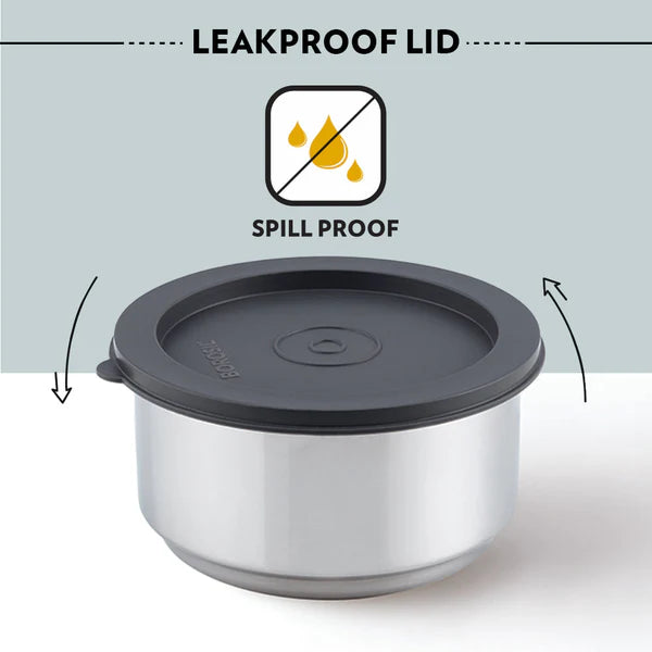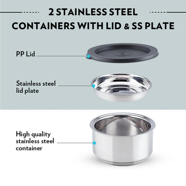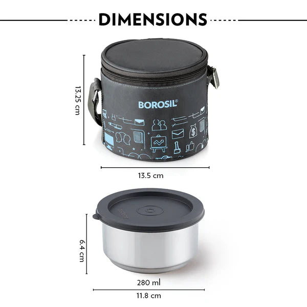 Borosil Carry Fresh Double Wall Stainless Steel Lunch Set WIth Vertical Lunch Bag