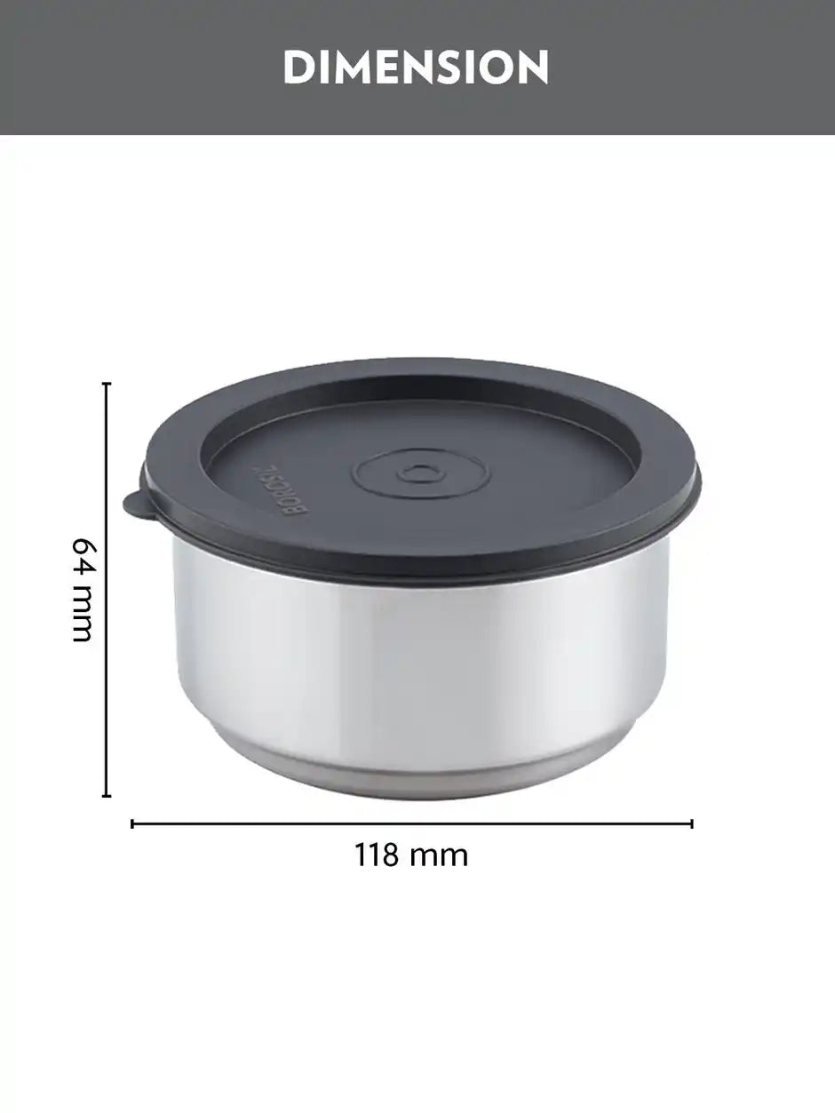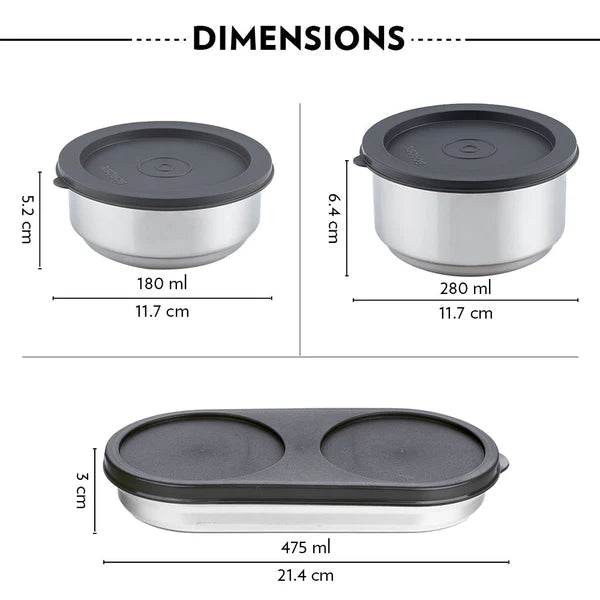 Borosil Carry Fresh Double Wall Stainless Steel Lunch Set WIth Horizontal Bag
