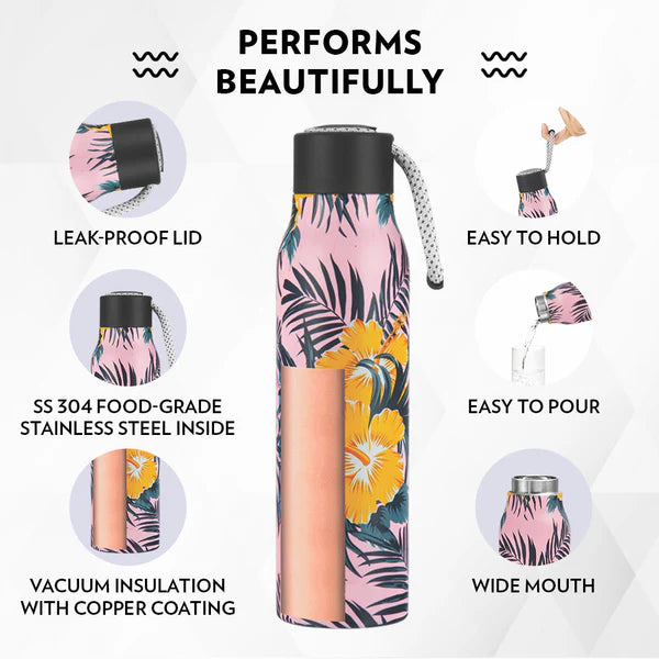 Borosil Hydra Aquasoul Tropical Thermal Vacuum Insulated Bottle 600ml Printed