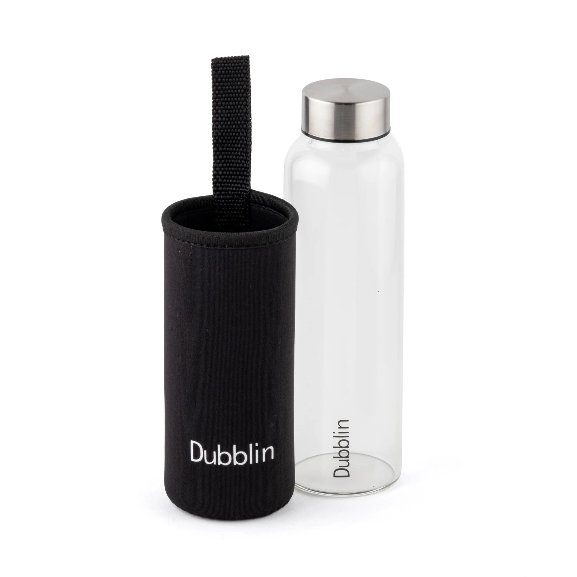 Dubblin Stream 400ml Slim Borosilicate Glass Bottle With Bag