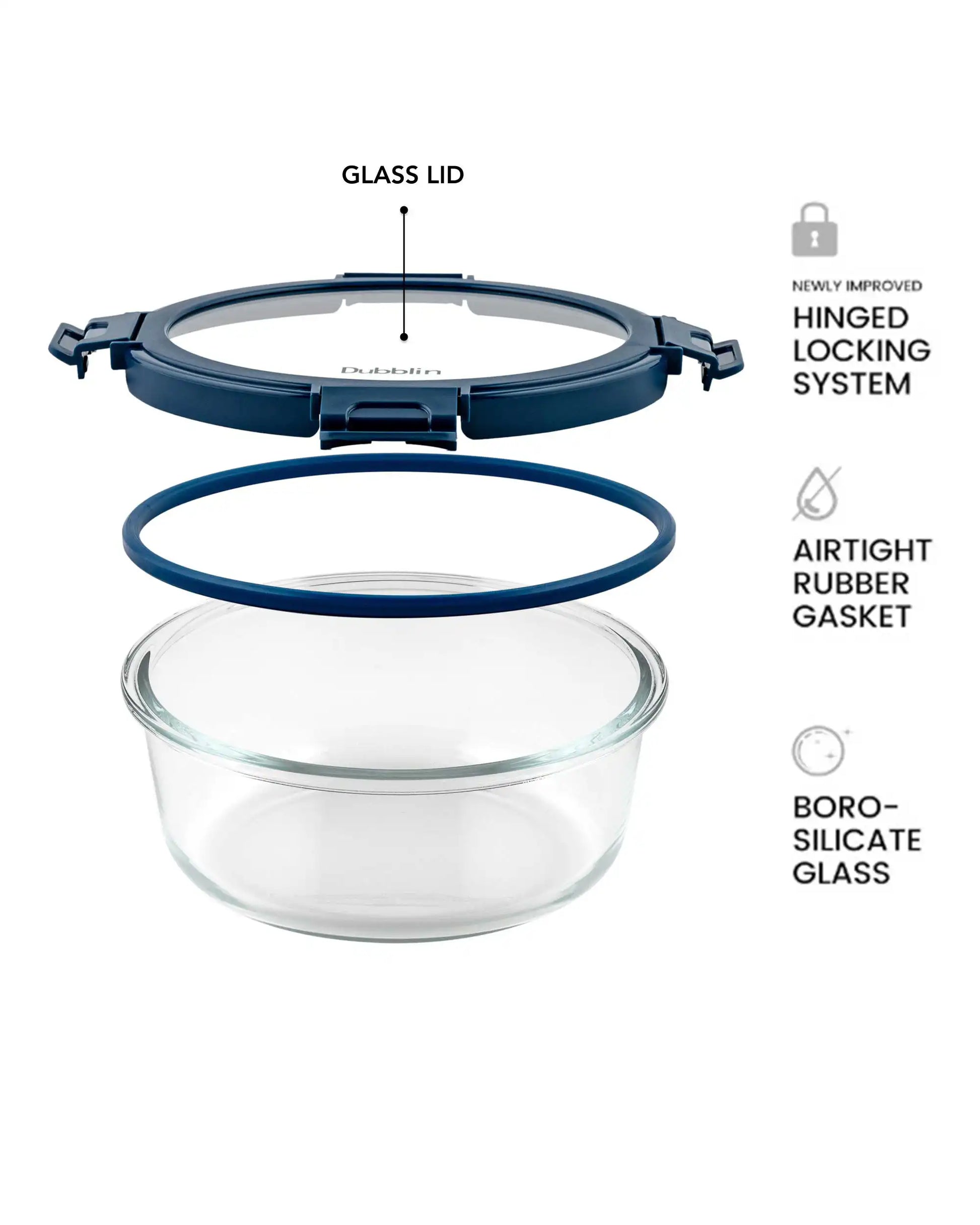 Dubblin Borosilicate Glass Container Round with Glass Lid