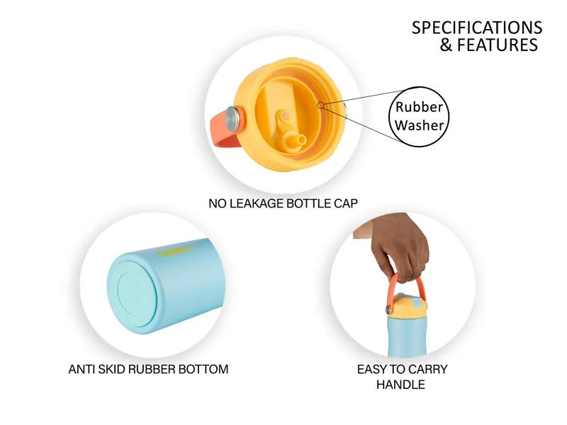 Special Features : Double Wall Vacuum Insulated, Leak Proof, Rust Proof, Food Grade Steel.