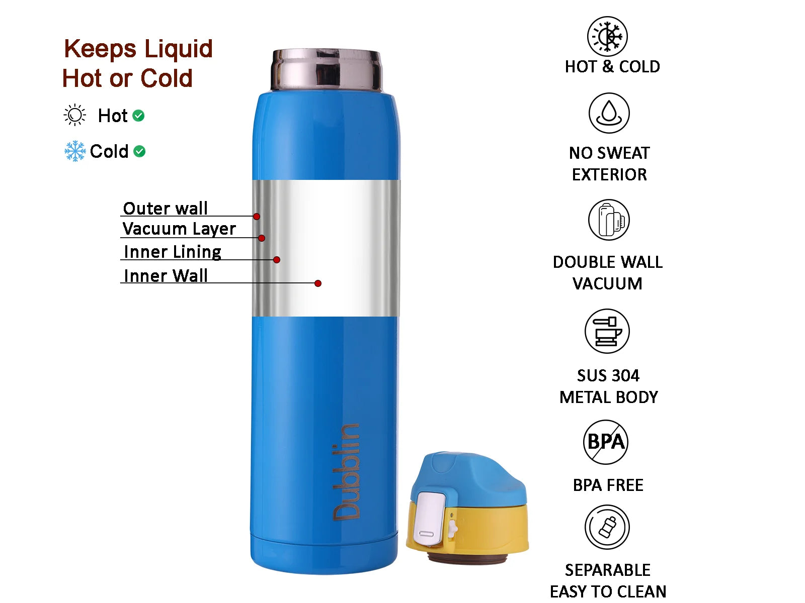 Special Feature : Double Wall Thermal Vacuum Insulated, Inside Copper Coating, Leak Proof, Food Grade Steel, BPA Free, Rust Proof