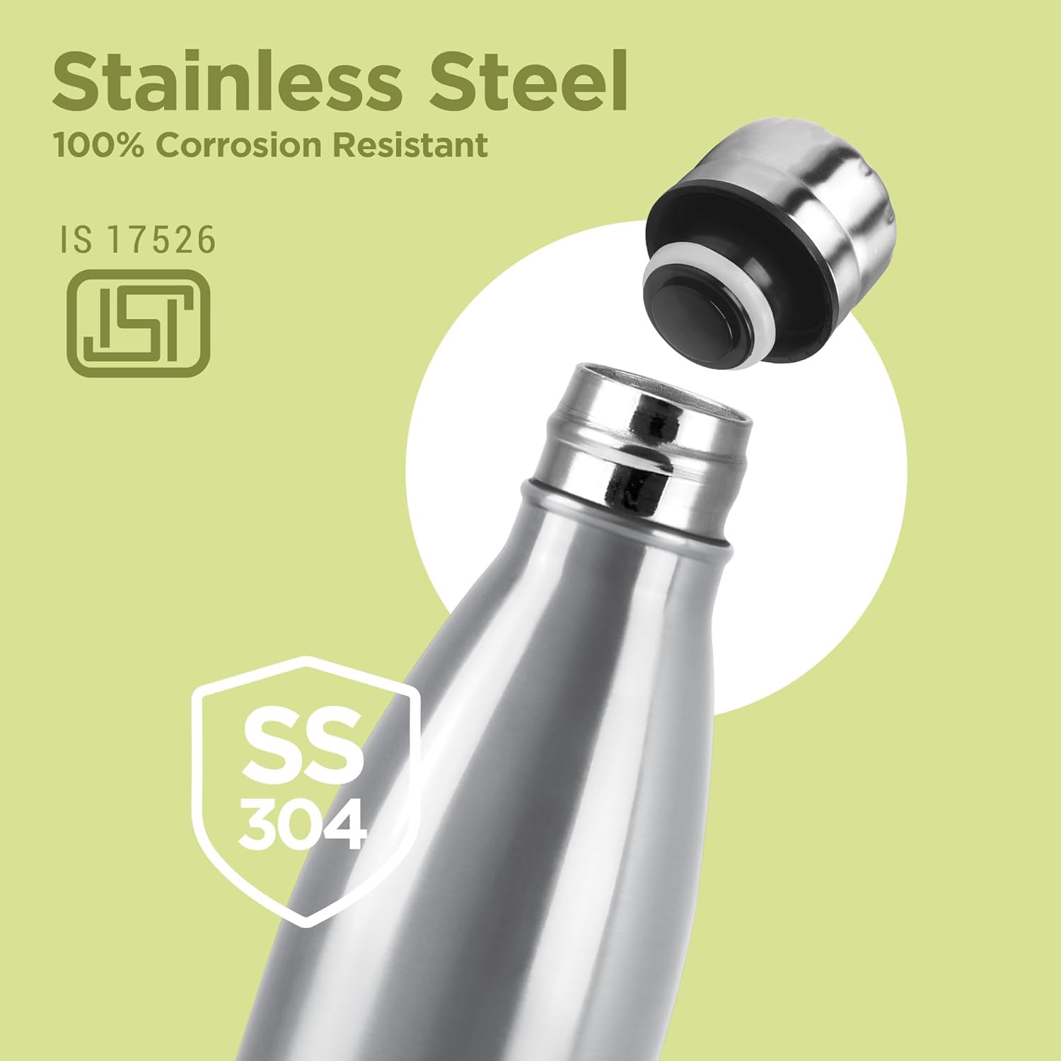 Special Feature : Double Wall Vacuum Insulated Hot and Cold Bottle With Inside Copper Coating, Leak Proof, Rust Resistant, Food Grade Steel
