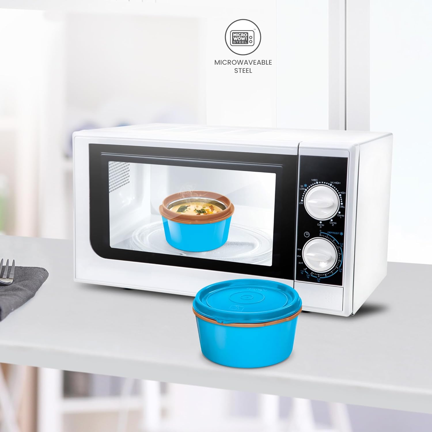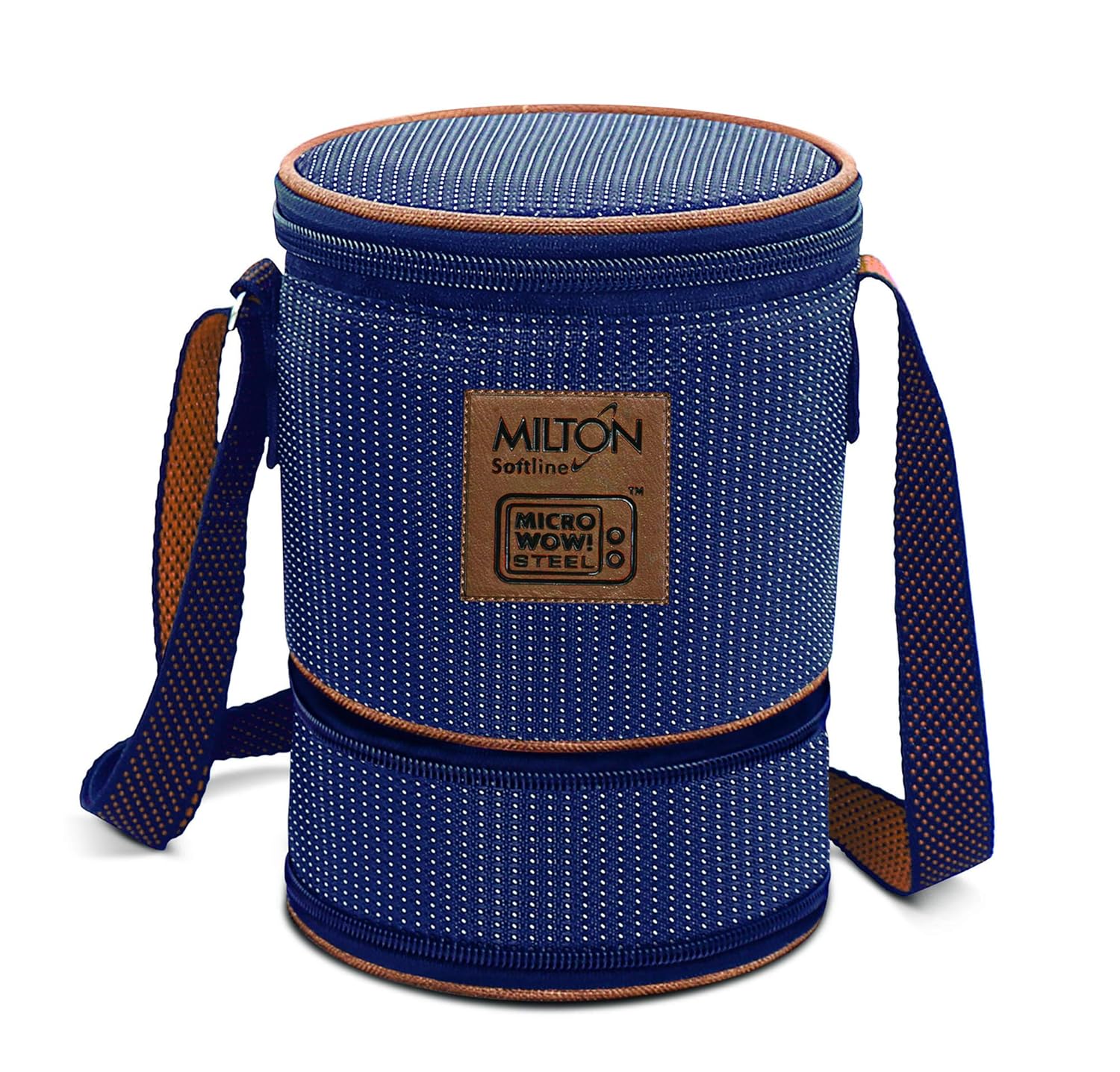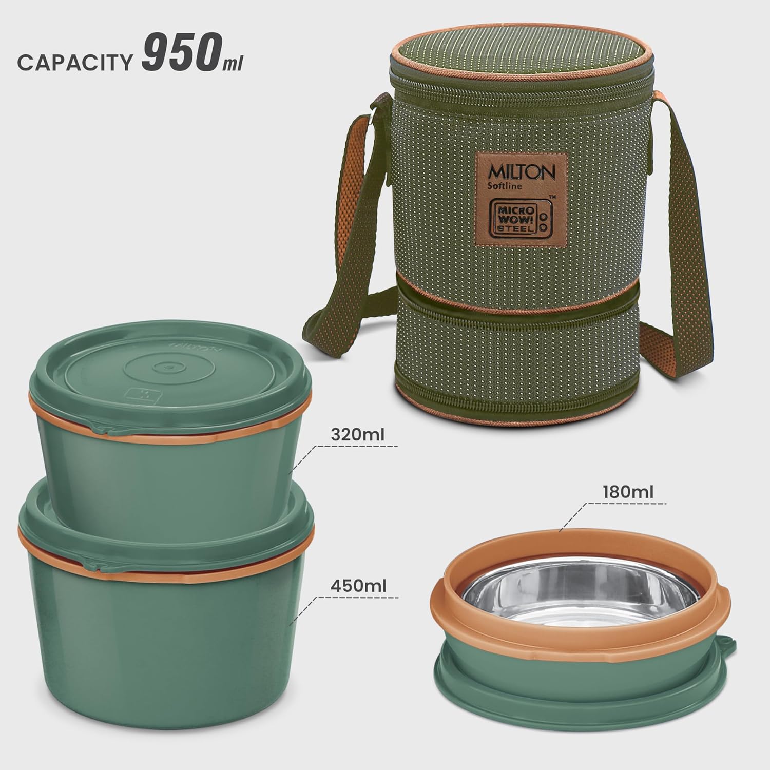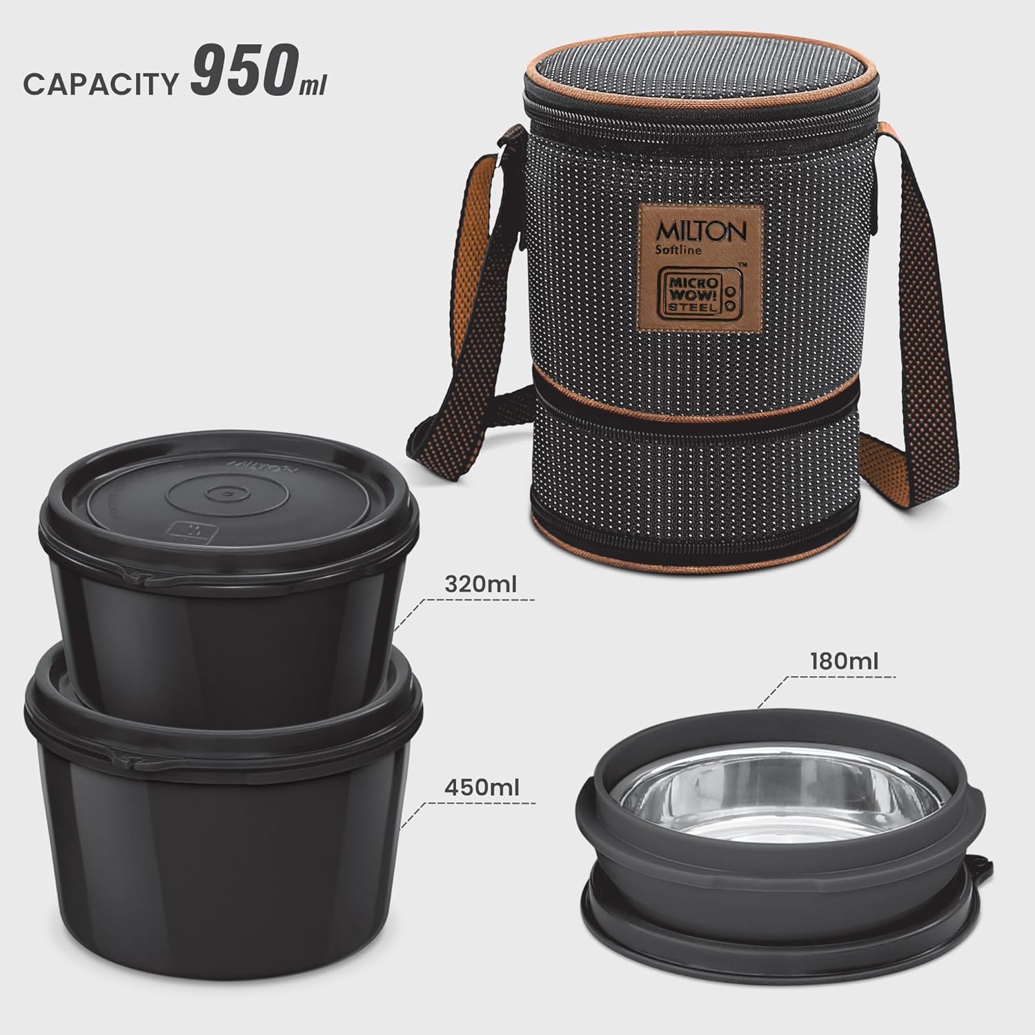 Milton Flexi Tiffin 2+1 Set Of 3 Outside Plastic Inside Stainless Steel Microwavable Container with Bag