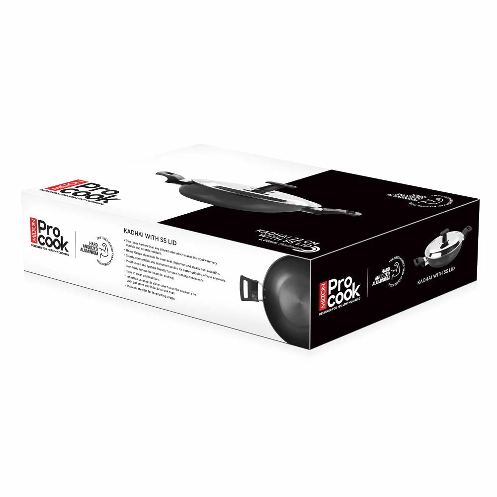 Milton Procook Hard Anodised Kadai with ss Lid