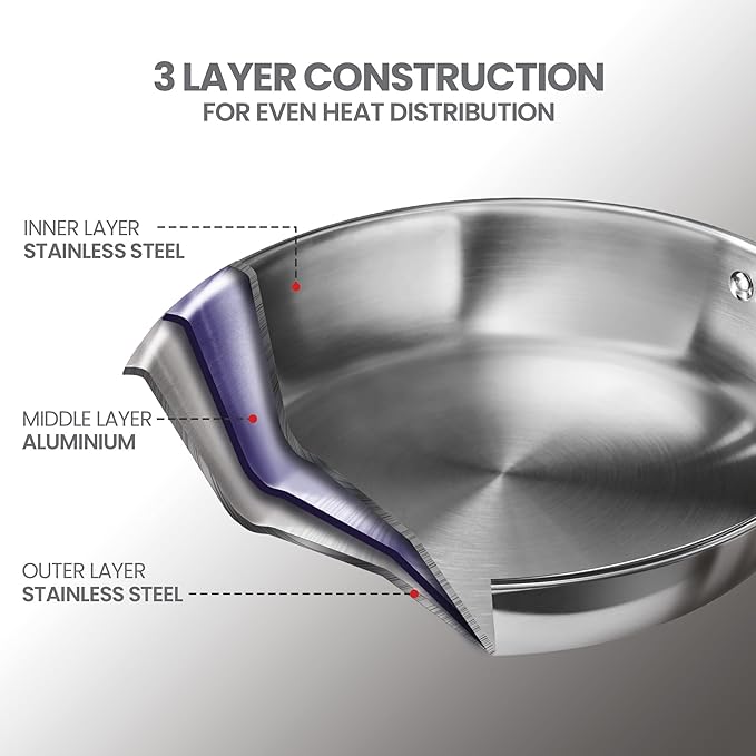 •Triply Construction : Each Piece Is Made With Three Layers Of Metal - Stainless Steel, Aluminum, And Stainless Steel - Ensuring Even Heat Distribution And Superior Cooking Performance.