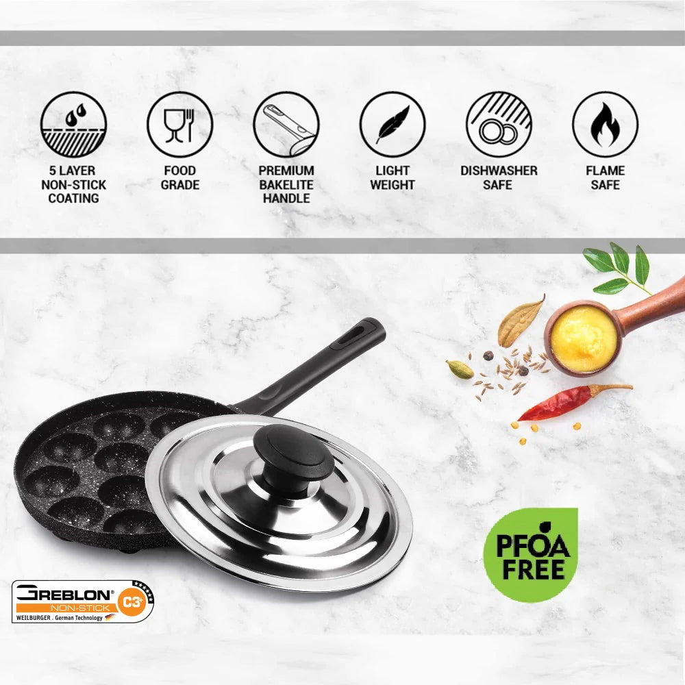 Milton Proocook Granito Non Induction Appam Patra with Stainless Steel Lid