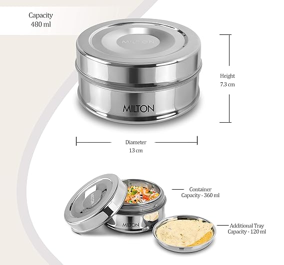 Package Contents: 1 Piece Double Wall Stainless Steel All Steel Insulated Lunch Tiffin Box Containers with inner plate.