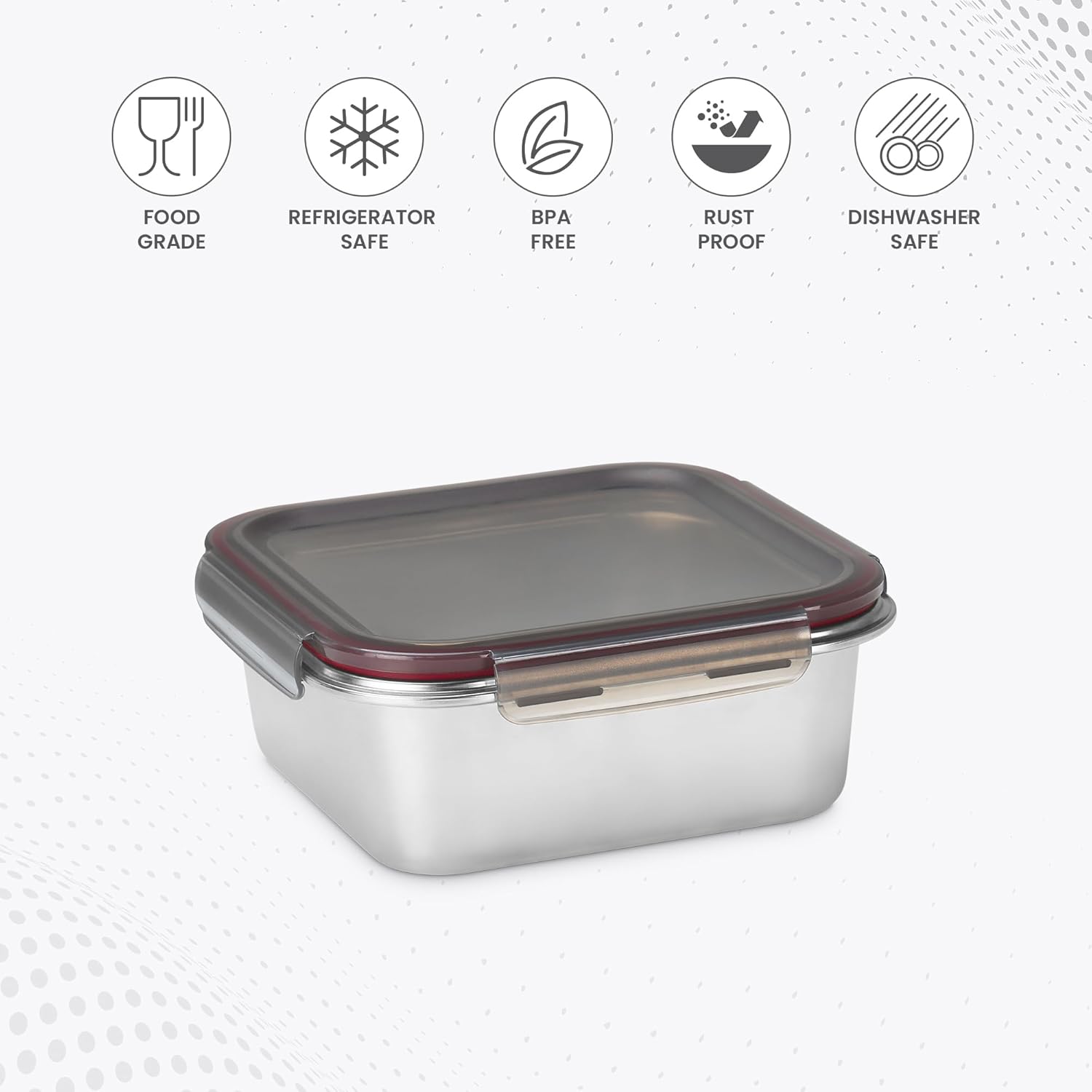 MILTON Modulo Steel Square Container with lock lid, Airtight & Leakproof, Microwave & Oven safe, Light Weight for School, Office or Picnic use.