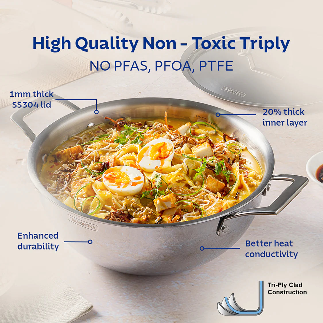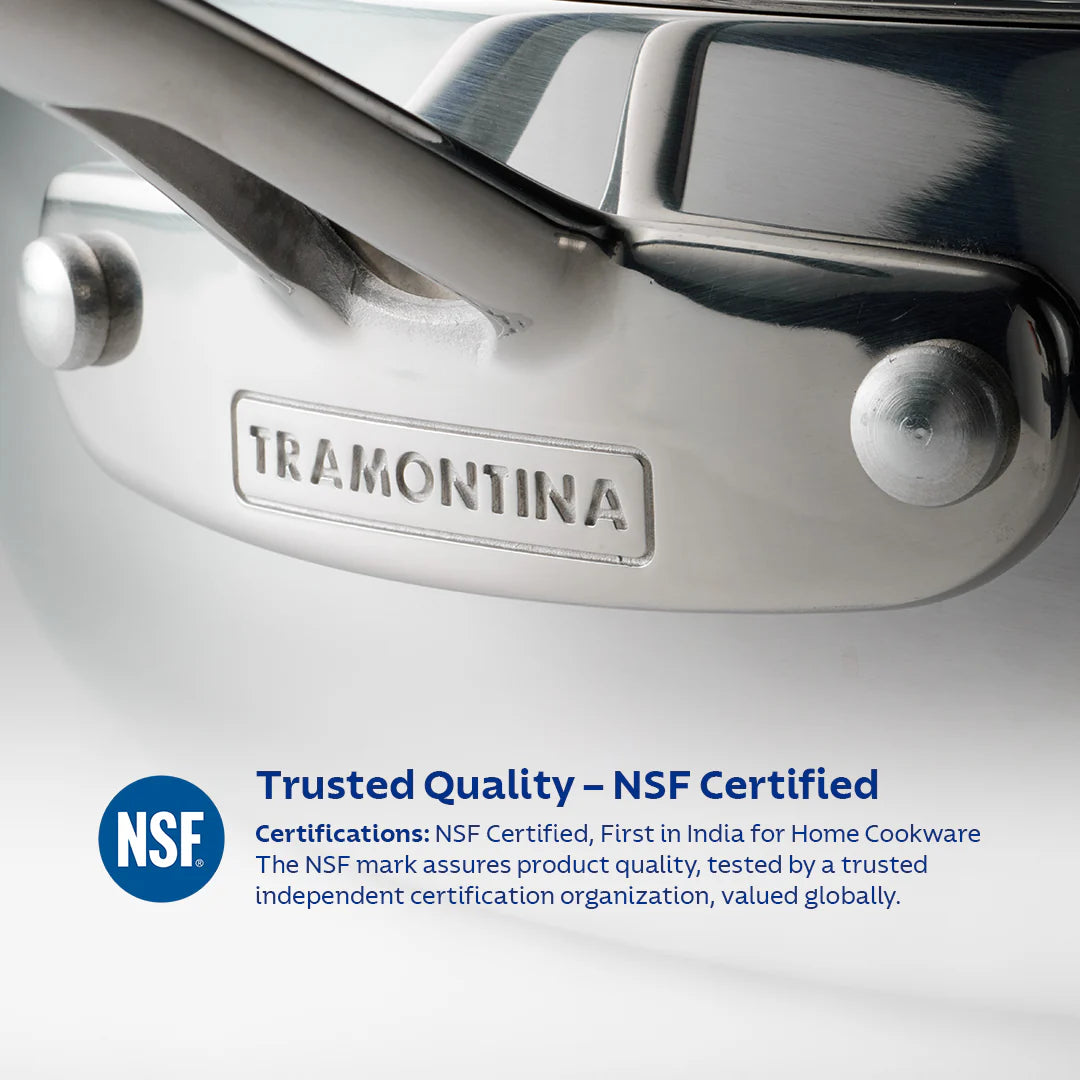 Tramontina Aeion Deep Kadai with SS Lid (20, 24, 26, 28, 32, 36, 40cm) Tri-Ply Clad Stainless Steel