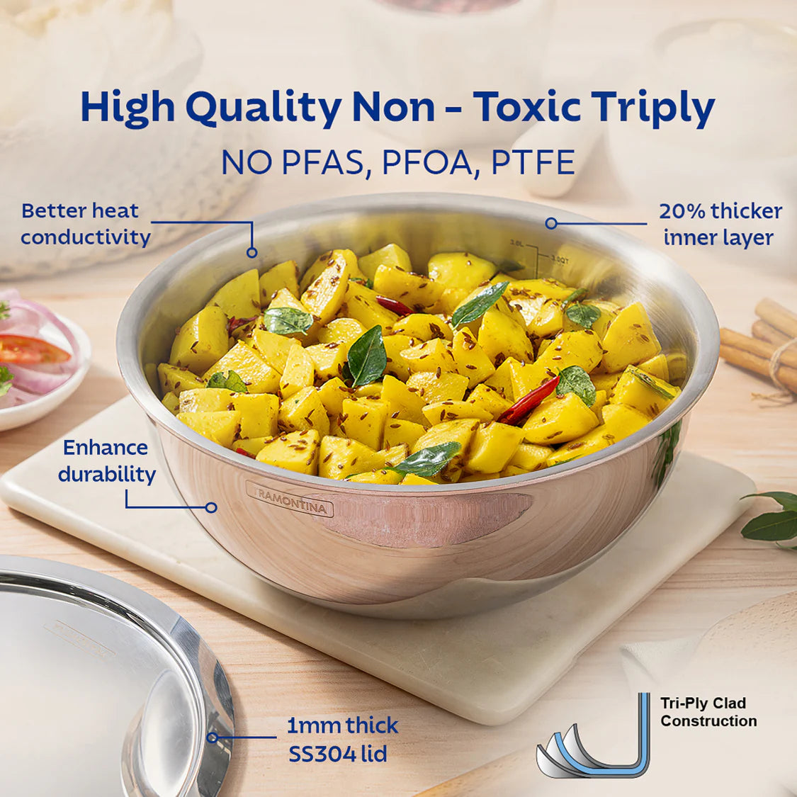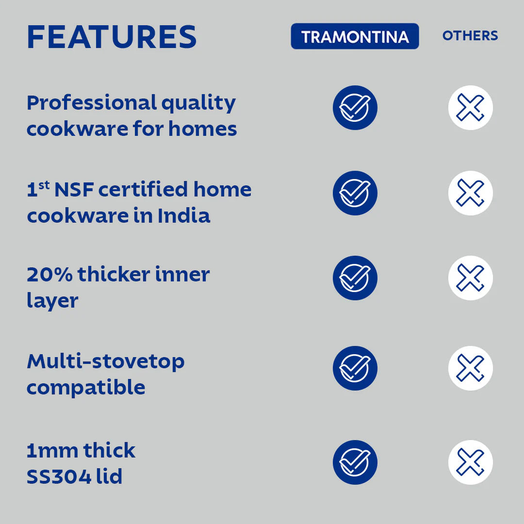 Tramontina Aeion Tasla with SS Lid (20, 22, 24, 26, 28cm) Tri-Ply Clad Stainless Steel